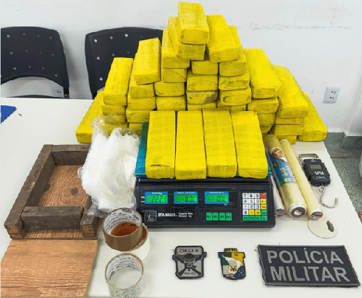 Na casa, foram apreendidos mais cinco tabletes da droga. Já no sítio, os militares encontraram novas porções de maconha, duas balanças de precisão e materiais para embalagem, totalizando mais de 35 quilos da droga.