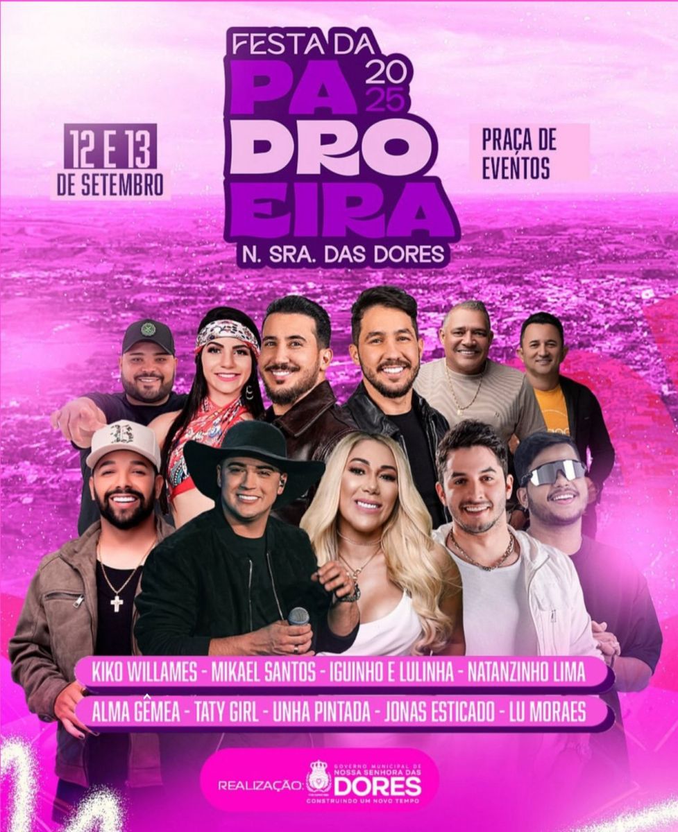 A cidade de Nossa Senhora das Dores se prepara para receber a tradicional Festa Social da Padroeira, um dos eventos mais aguardados do calendário cultural da localidade. Nos dias 12 e 13 de setembro, a Praça de Eventos será palco de shows que prometem atrair milhares de pessoas com uma programação repleta de grandes atrações como Natanzinho, Iguinho e Lulinha e Jonas Esticado.