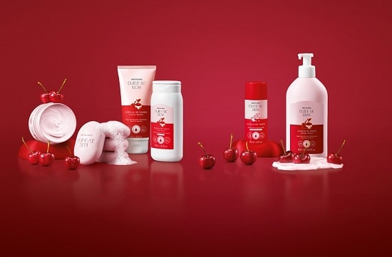 A fragrância de Cereja de Fases foi desenvolvida com neurociência para trazer conforto e bem-estar, criando uma experiência sensorial acolhedora. De perfil floriental frutal envolvente, a fragrância traz mais cremosidade e conforto desde a primeira aplicação, com um fundo de chocolate branco que adiciona uma camada de indulgência e aconchego. Mais do que perfumar, contribui para momentos de pausa, cuidado e conexão consigo mesma ao longo do dia. Composto por dez itens, o portfólio atende às diferentes necessidades que surgem ao longo do ciclo, desde o banho até a hidratação, passando por produtos de alívio, perfumação e cuidados específicos.
