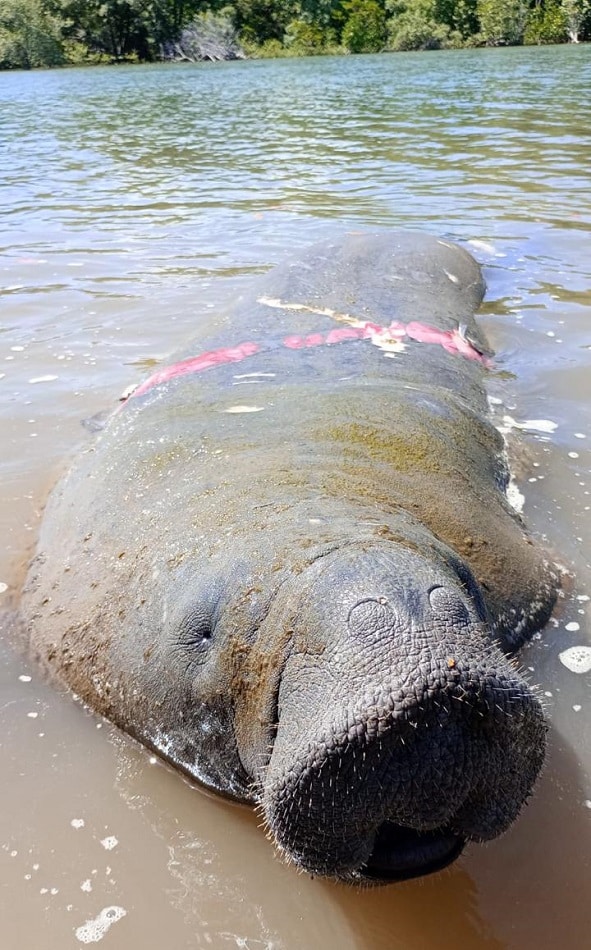 É obrigatório manter distância mínima de 10 metros dos animais e não oferecer alimentos, bebidas ou água aos peixes-bois-marinhos.