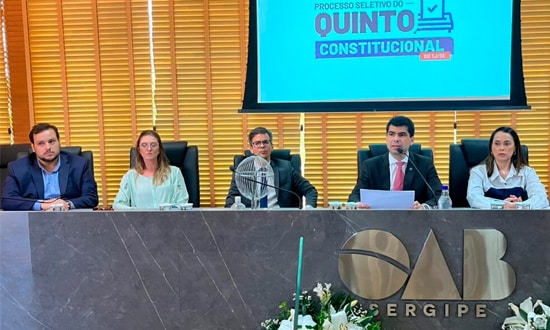 A Ordem dos Advogados do Brasil – Seccional Sergipe (OAB/SE), em parceria com a Revista Advogados, realizará na próxima segunda-feira, 17, a “Sabatina – Quinto Constitucional OAB/SE” com os candidatos que concorrem à vaga destinada à advocacia no Tribunal de Justiça de Sergipe (TJSE). O evento tem como objetivo promover o diálogo entre os candidatos inscritos e a advocacia sergipana, fortalecendo a transparência e a participação da classe no processo de escolha.