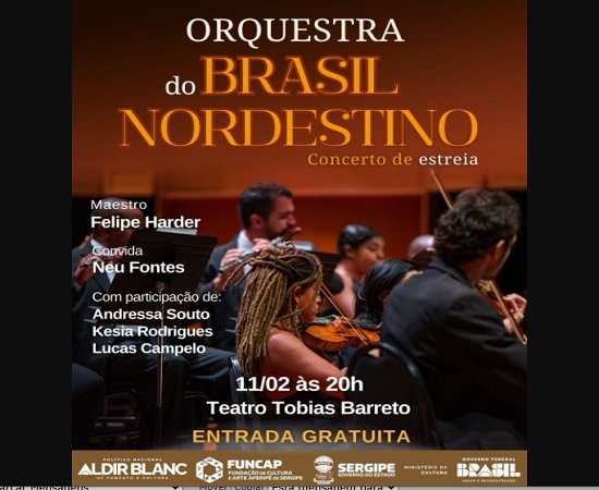 No dia 11 de fevereiro, às 20h, o Teatro Tobias Barreto abre as portas para o concerto de estreia da Orquestra do Brasil Nordestino, novo grupo sinfônico sergipano criado para celebrar e projetar a cultura nordestina nos palcos do país. A apresentação será gratuita e marca o início da trajetória da orquestra, que já tem circulação prevista em estados como São Paulo, Bahia e Alagoas.