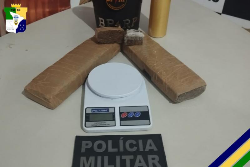 Militares do Batalhão de Polícia de Radiopatrulha (BPRp) apreenderam dois tabletes de maconha, nessa quarta-feira (19), no Conjunto Albano Franco, em Nossa Senhora do Socorro, Grande Aracaju.