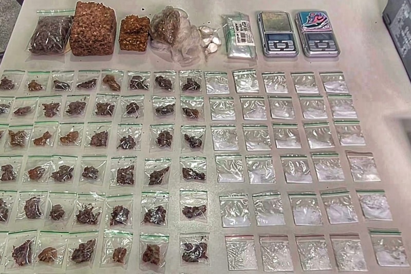 A equipe verificou o material descartado, e encontrou uma mochila com maconha, cocaína, duas balanças de precisão e sacos para acondicionamento dos entorpercentes.