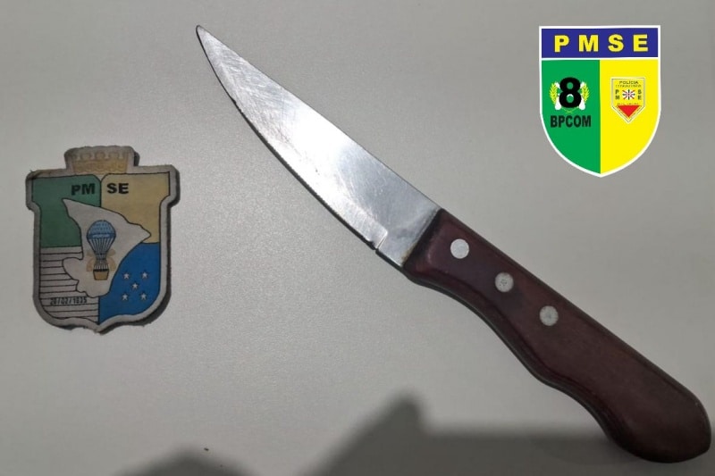 Durante as buscas na região, a equipe localizou o suspeito em uma viela próxima à residência, portando uma faca.