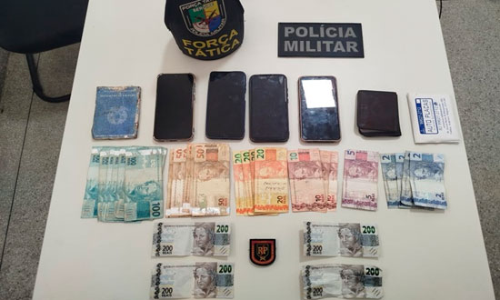 No momento da prisão, os policiais apreenderam várias cédulas com sinais de falsificação, aparelhos celulares e documentos dos suspeitos. O material foi levado para uma agência bancária, onde foi confirmada a fraude.