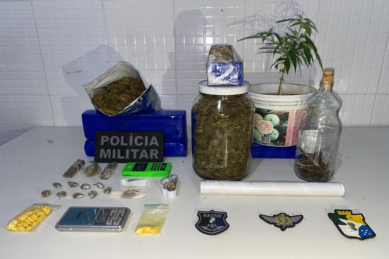 Na ação, 51 unidades de drogas sintéticas, duas porções de haxixe, além de balança de precisão, embalagens com porções de maconha e três tabletes de maconha prensada foram apreedidas pela equipe.