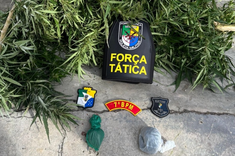Em continuidade à ação, a equipe policial encontrou um homem que informou que o material ilícito pertenceria ao seu filho. Durante as buscas, também foi localizada uma quantidade de maconha já pronta para consumo.