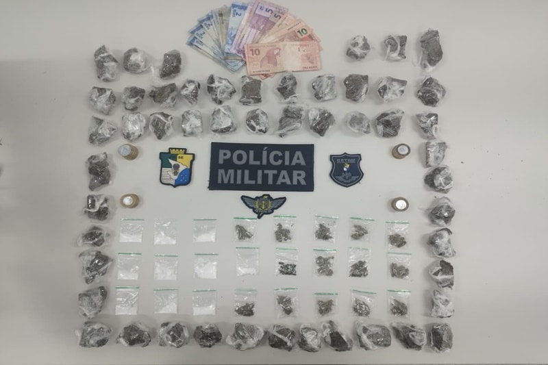 Após verbalização, eles saíram e foram abordados na parte externa. Na casa, foram apreendidas embalagens com maconha e cocaína, R$ 137,00 em dinheiro, além de embalagens e 50 papelotes de maconha escondidos no banheiro.