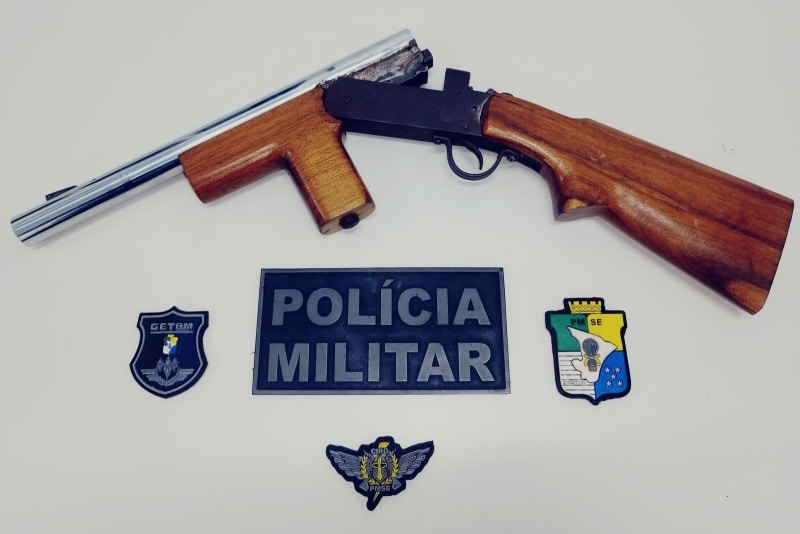 Foram apreendidas 82 porções de drogas acondicionadas em invólucros plásticos, 125 embalagens de papel alumínio com entorpecentes; uma trouxa de maconha pesando aproximadamente 300g, uma espingarda calibre 12 de fabricação artesanal, municiada, uma faca de cabo branco, utilizada para o corte da droga, uma mini balança de precisão, além de materiais para fracionamento de drogas, como rolos de plástico filme, papel alumínio e embalagens “Zip Lock” vazias.
