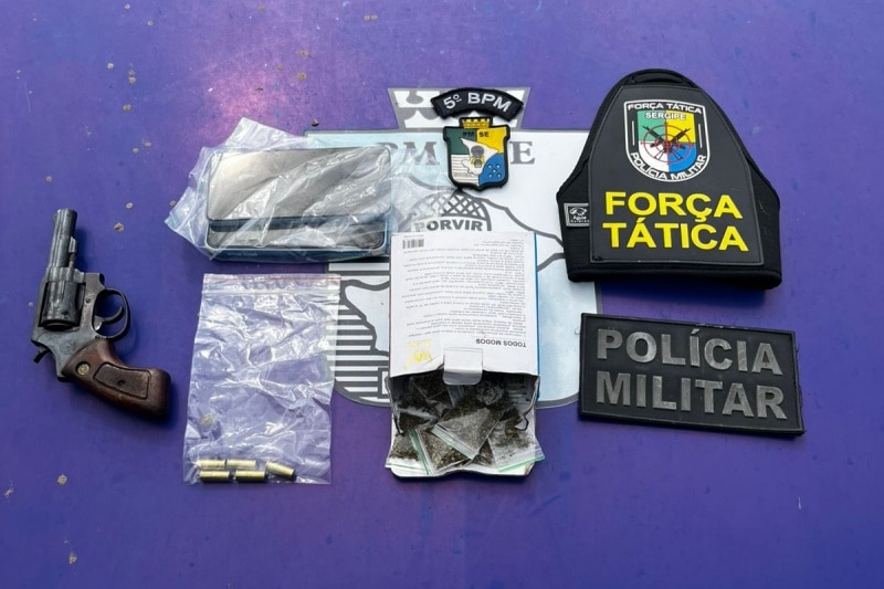 Na manhã desta segunda-feira (29), a Força Tática do 5º Batalhão de Polícia Militar (5º BPM) apreendeu uma arma de fogo e porções de maconha no Conjunto João Alves, em Nossa Senhora do Socorro. A ação teve início quando os policiais realizavam patrulhamento ostensivo na Rua 36, localidade conhecida pela alta incidência de atividades criminosas.