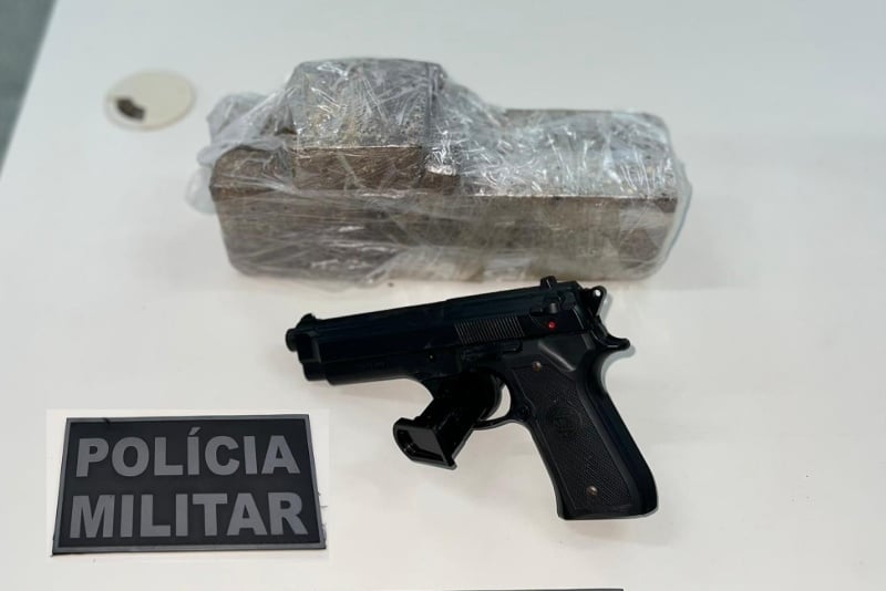 Na varredura minuciosa efetuada no local onde os suspeitos estavam, os militares encontraram uma bolsa de cor preta. Dentro da bolsa, foram localizados um simulacro de arma de fogo e 1,9 kg de maconha.