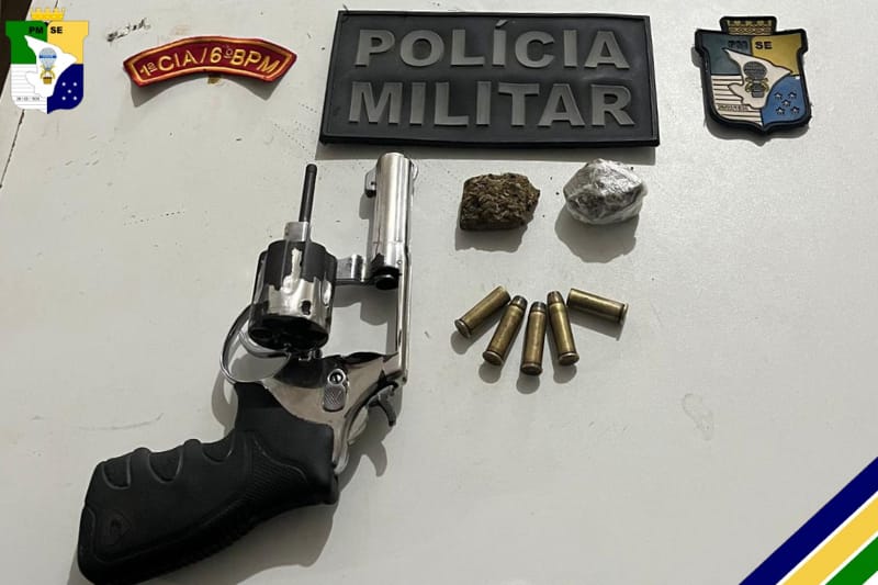 Com o suspeito, foram apreendidos um revólver calibre 38, duas munições deflagradas, duas munições picotadas, uma munição intacta, duas porções de maconha e um aparelho celular.
