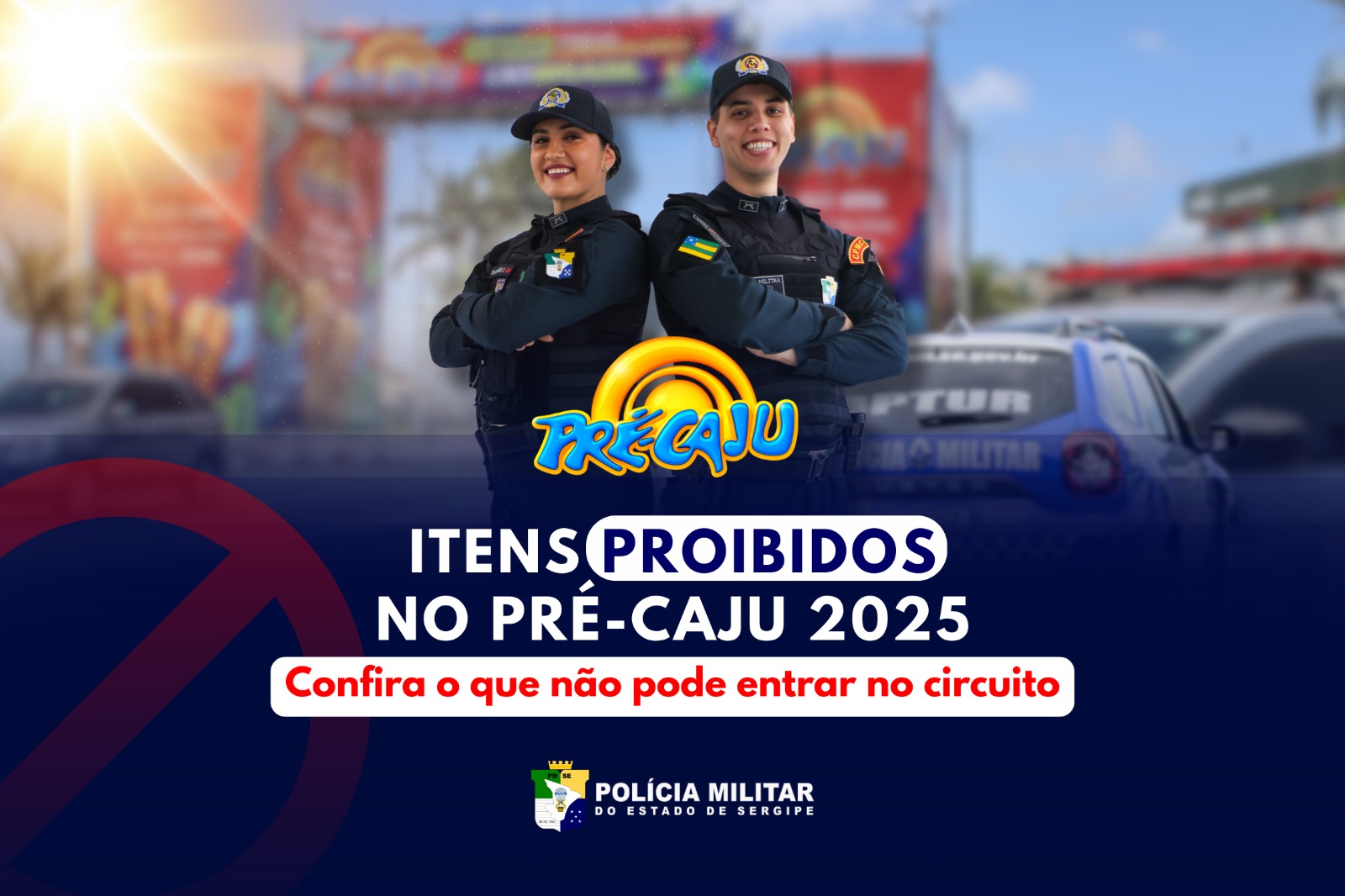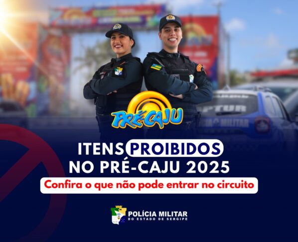 Com o objetivo de garantir a segurança e o bem-estar de todos os participantes do Pré-Caju 2025, que ocorrerá nos dias 14, 15 e 16 de novembro, na Orla da Atalaia, a PMSE informa que será terminantemente proibida a entrada no circuito do evento com os seguintes itens: