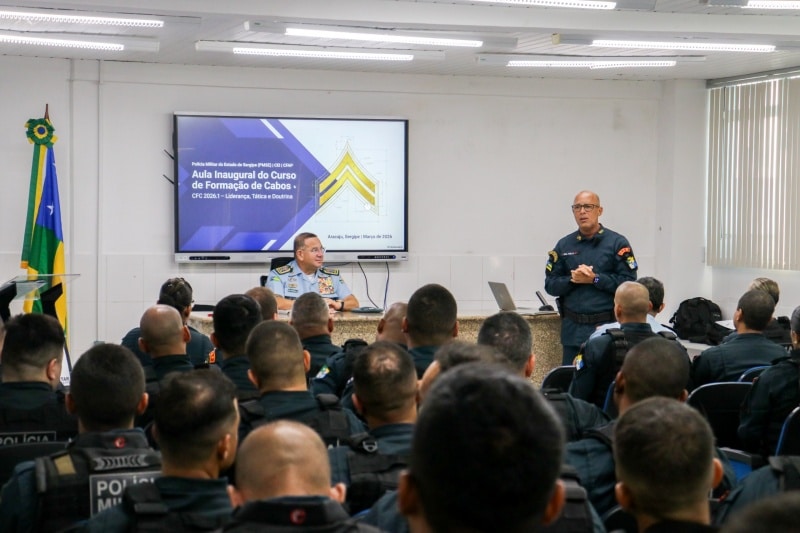 A Polícia Militar do Estado de Sergipe realizou, na manhã desta segunda-feira (16), a aula inaugural do Curso de Formação de Cabos (CFC) 2026.1. A atividade ocorreu no auditório do Quartel do Comando-Geral (QCG), em Aracaju.
