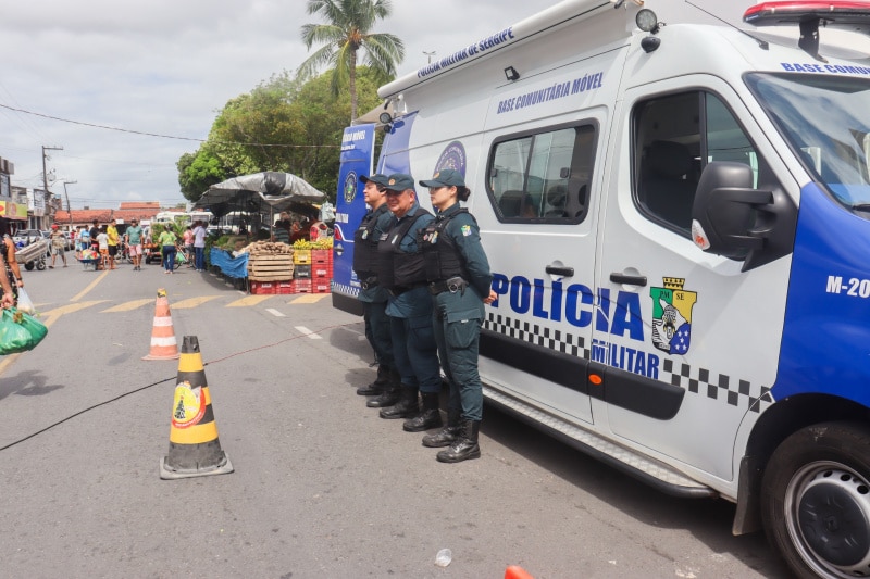 A presença da farda traz alívio imediato para quem movimenta a economia. A comerciante Michele Barreto, que se desloca semanalmente do município de Moita Bonita para a capital, sentiu a diferença. Trabalhando na feira do conjunto Bugio neste domingo, ela destacou a redução do risco de assaltos.