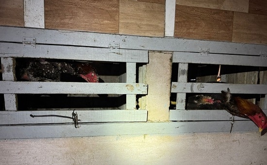 Durante o cumprimento da ordem judicial, foram encontrados 50 galos apresentando sinais de maus-tratos. Também foram apreendidos diversos materiais utilizados na prática ilícita, como esporas artificiais, medicamentos e instrumentos característicos de rinhas.