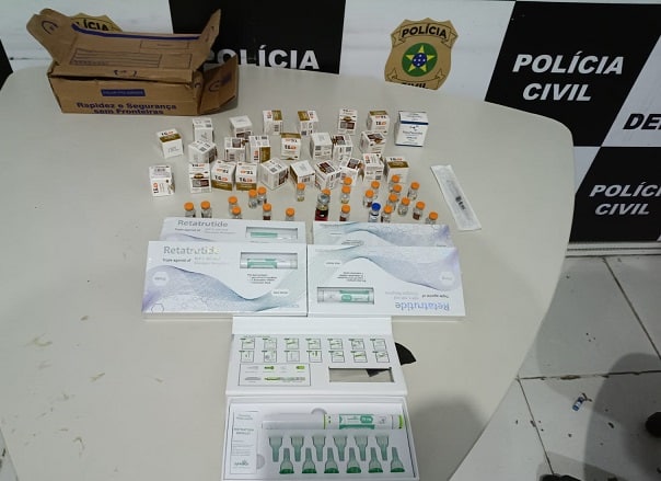 A ação foi desencadeada após denúncia, que indicava a venda dos produtos no local. Durante a fiscalização, os policiais encontraram substâncias como a tirzepatida, princípio ativo de medicamento utilizado no tratamento de diabetes e emagrecimento, além de outro composto ainda proibido pela Agência Nacional de Vigilância Sanitária (Anvisa).