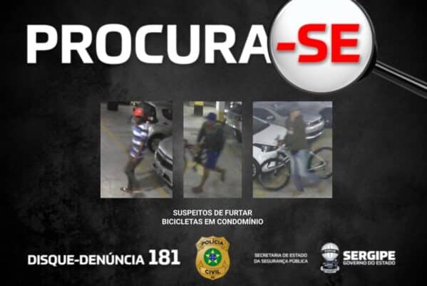 A Polícia Civil, por meio da 4ª Delegacia Metropolitana (DM), divulgou, nesta quinta-feira (16), as imagens dos homens que furtaram 15 bicicletas da área da garagem de um condomínio residencial do bairro Farolândia, em Aracaju. O caso ocorreu na madrugada do dia 10 de outubro.