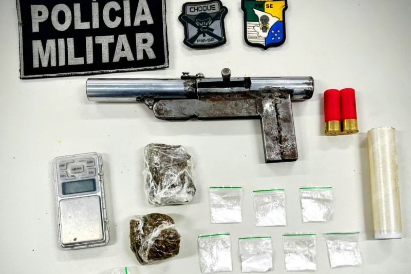 Equipes do Batalhão de Polícia de Choque (BPChoque) apreenderam uma arma de fogo caseira calibre .12 e uma quantidade significativa de entorpecentes no município de Nossa Senhora do Socorro. O fato foi registrado na última segunda-feira (27).