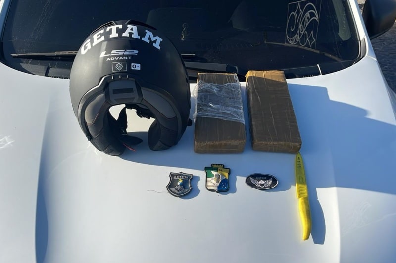 Devido à suspeita, a equipe policial foi até o local para averiguar a situação. Durante a revista, os agentes encontraram dois tabletes de maconha dentro do veículo, pesando pouco mais de 2Kg.