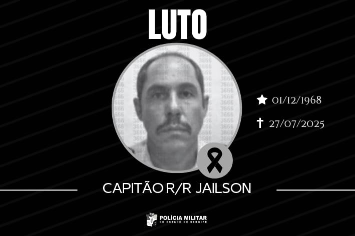 A Polícia Militar do Estado de Sergipe manifesta, com profundo pesar, o falecimento do Capitão Jailson de Oliveira Silva, da reserva remunerada, ocorrido neste domingo, 27 de julho.