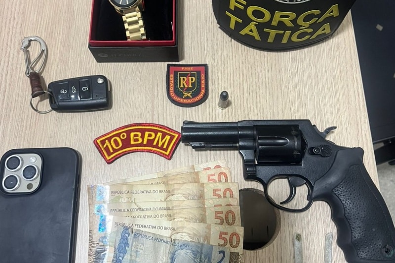 Ao retornarem para verificar o objeto descartado pela dupla durante a perseguição, os agentes constataram que realmente tratava-se de um revólver calibre .38, com uma munição intacta e a numeração raspada.