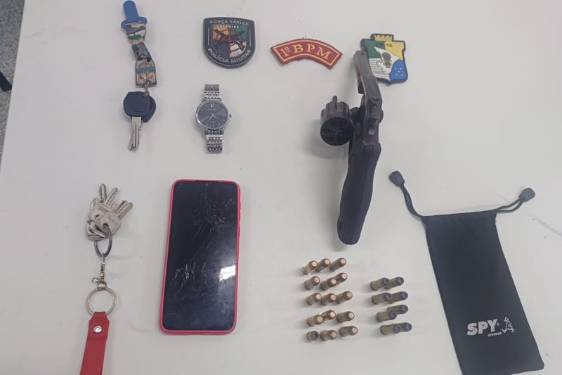 Em meio à fuga, os policiais perceberam quando o homem arremessou uma bolsa pela janela do veículo, antes de ser interceptado. Dentro da sacola descartada pelo suspeito, os policiais descobriram que havia um revólver e 23 munições intactas.