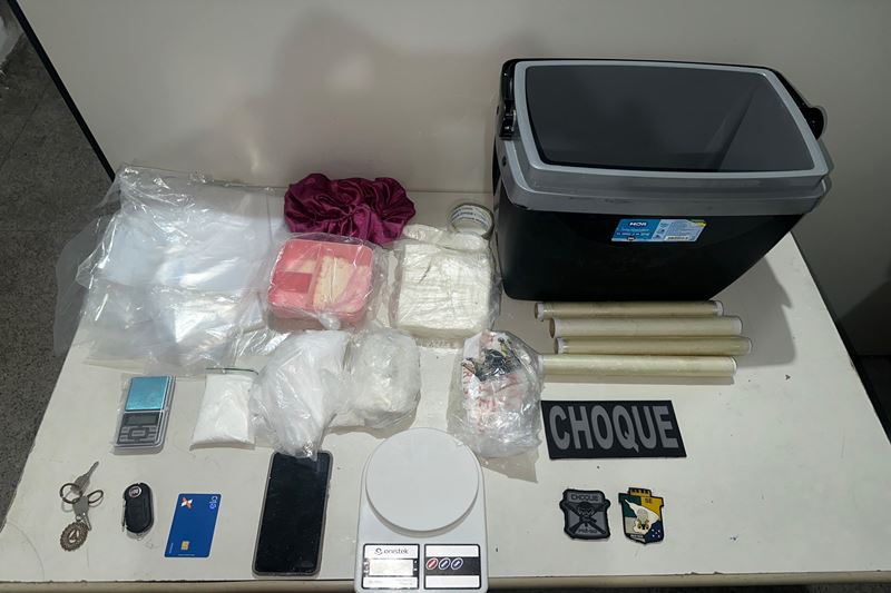 Durante patrulhamento, os militares visualizaram um veículo Fiat Pálio efetuando manobras perigosas. Após ordem de parada, a equipe iniciou as buscas no interior do veículo e encontraram aproximadamente 2kg de substância análoga a cocaína, duas balanças de precisão, além de materiais para embalagem do entorpecente.