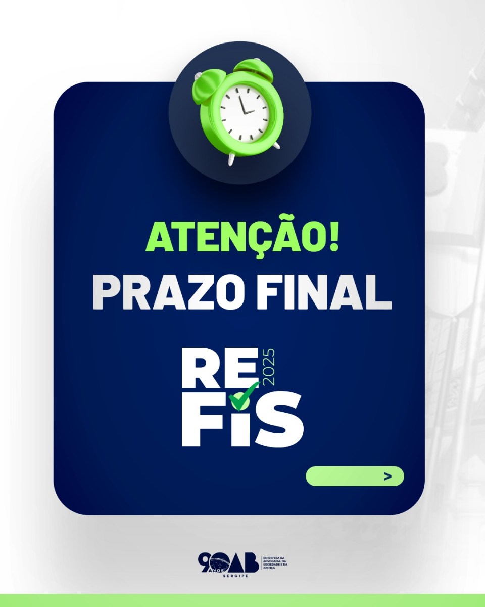 A adesão ao REFIS 2025 pode ser feita diretamente na tesouraria da OAB/SE, de segunda a sexta-feira, das 8h às 12h e das 14h às 18h.