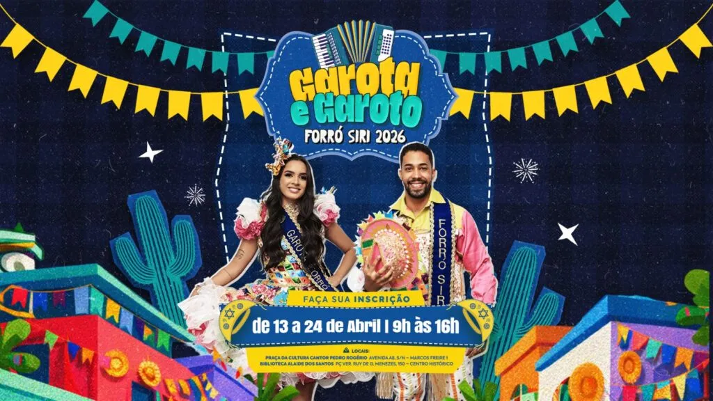 A Prefeitura de Nossa Senhora do Socorro divulga o início das inscrições para o Concurso Garoto e Garota Forró Siri 2026, uma iniciativa da Secretaria Municipal da Cultura e Economia Criativa (Secult), para valorizar a cultura nordestina, incentivar a participação da juventude e fortalecer as tradições juninas no município.