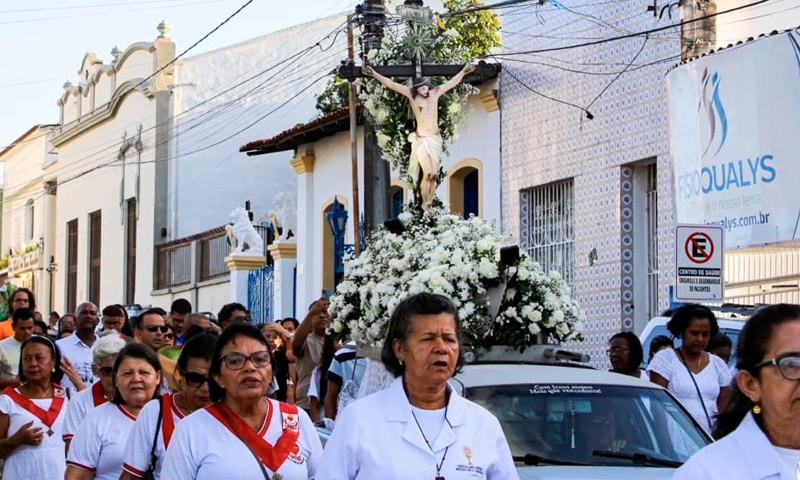 Após o retorno ao Ponto do Imperador, terá início a procissão terrestre, que percorrerá importantes vias do centro histórico da cidade, passando por praças e ruas tradicionais, até a subida final para a Colina de Santo Antônio.