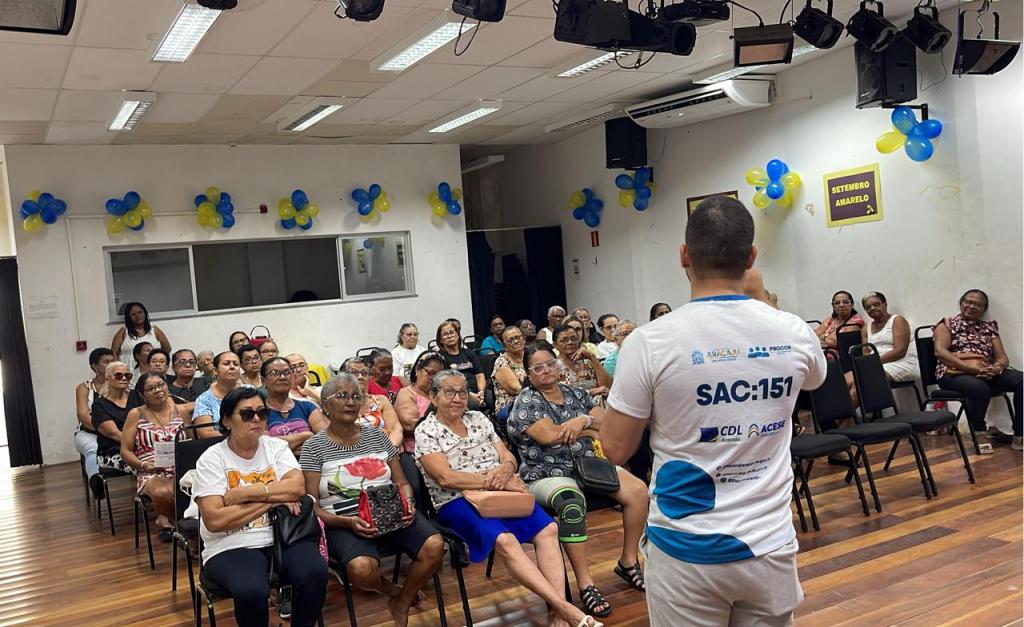 Uma tarde diferente, regada à muita informação. Foi assim no Centro de Referência da Assistência Social (Cras) Flor Jurubeba, localizado no bairro Olaria. Idosos atendidos no equipamento participaram nesta quarta-feira, 17, de uma palestra sobre golpes digitais. A ação foi realizada pelo Procon Aracaju, órgão vinculado à Secretaria da Defesa Social e da Cidadania (Semdec).