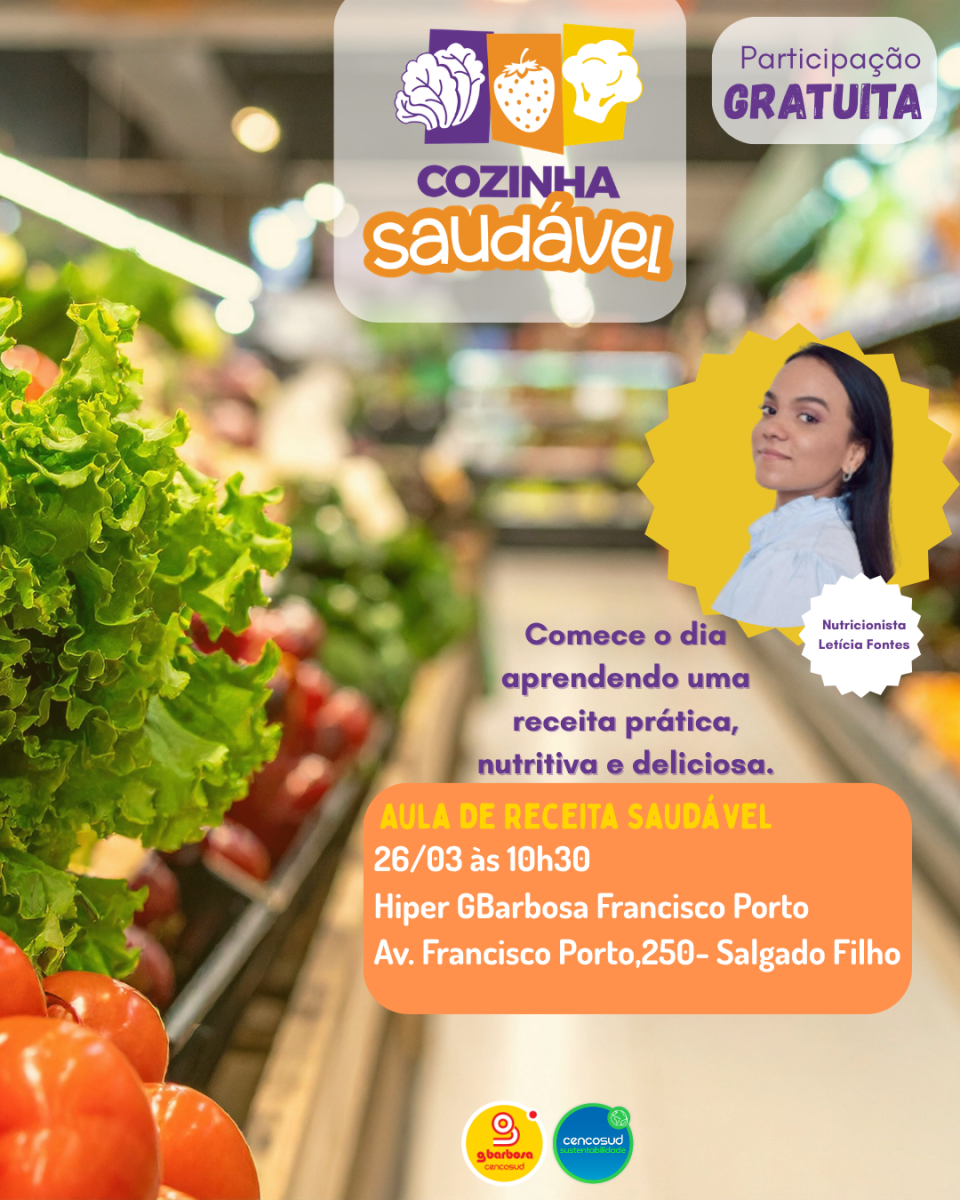 Viver bem, com saúde e disposição, tem muito a ver com as escolhas à mesa. Ao promover uma cultura de saudabilidade nas comunidades onde atua, o Instituto Cencosud Sustentabilidade promoverá um novo encontro do Projeto Cozinha Saudável na próxima quinta-feira, 26, a partir das 10h30, na loja GBarbosa da Francisco Porto. Os clientes da rede estão convidados para uma experiência gastronômica com a nutricionista Letícia Fontes.