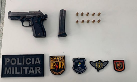 A pistola, que estava carregada com dez munições, foi apreendida e encaminhada à Central de Flagrantes para adoção das medidas cabíveis.