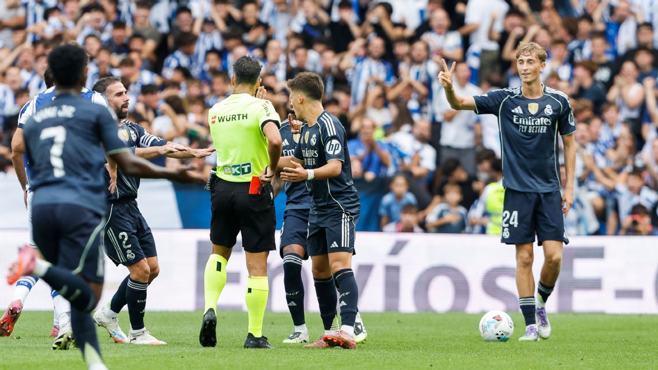 Segundo apurou a ESPN, o Real Madrid vai recorrer para tentar anular a polêmica expulsão do zagueiro Dean Huijsen, que levou cartão vermelho na vitória por 2 a 1 dos merengues sobre a Real Sociedad, no último sábado (13), por LALIGA.