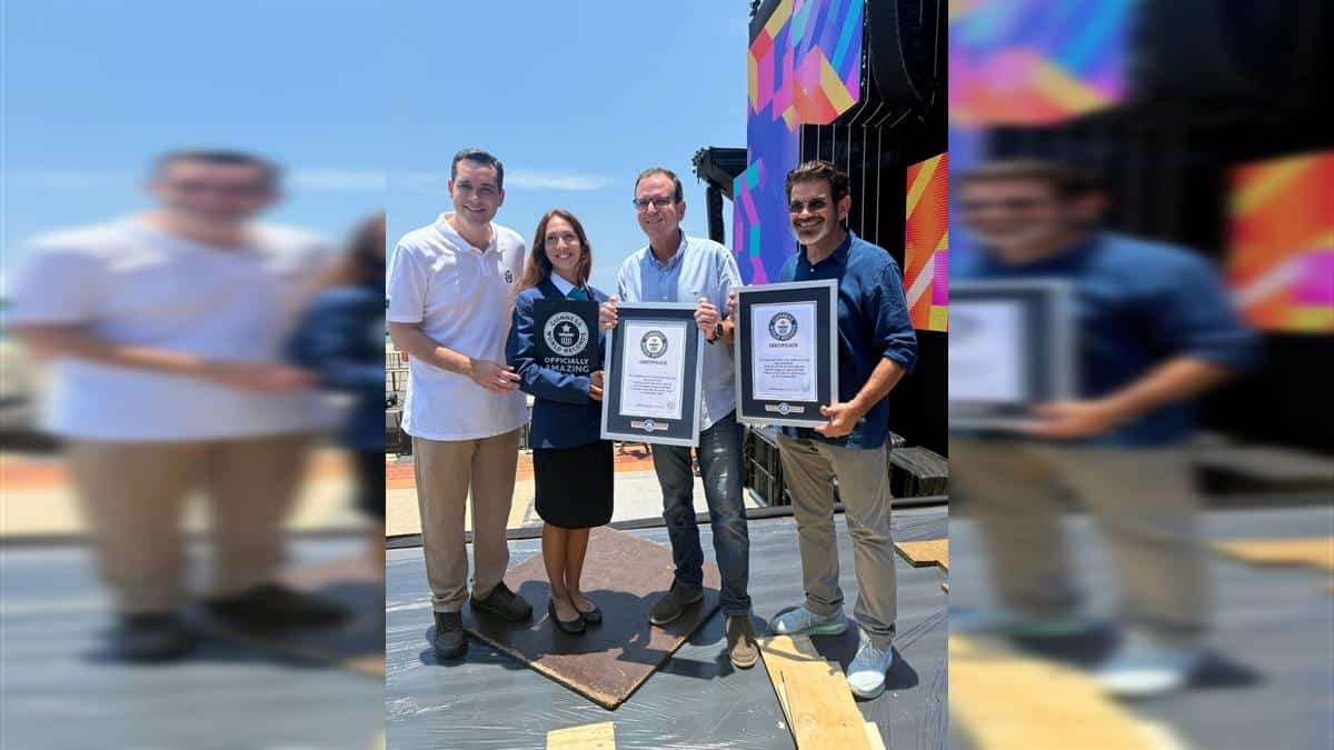 Vice-prefeito do Rio, Eduardo Cavaliere, a jurada do Guinness World Records, Camila Borenstain, o prefeito do Rio, Eduardo Paes, e o sócio e vice-presidente de Criação da SRCOM, Abel Gomes