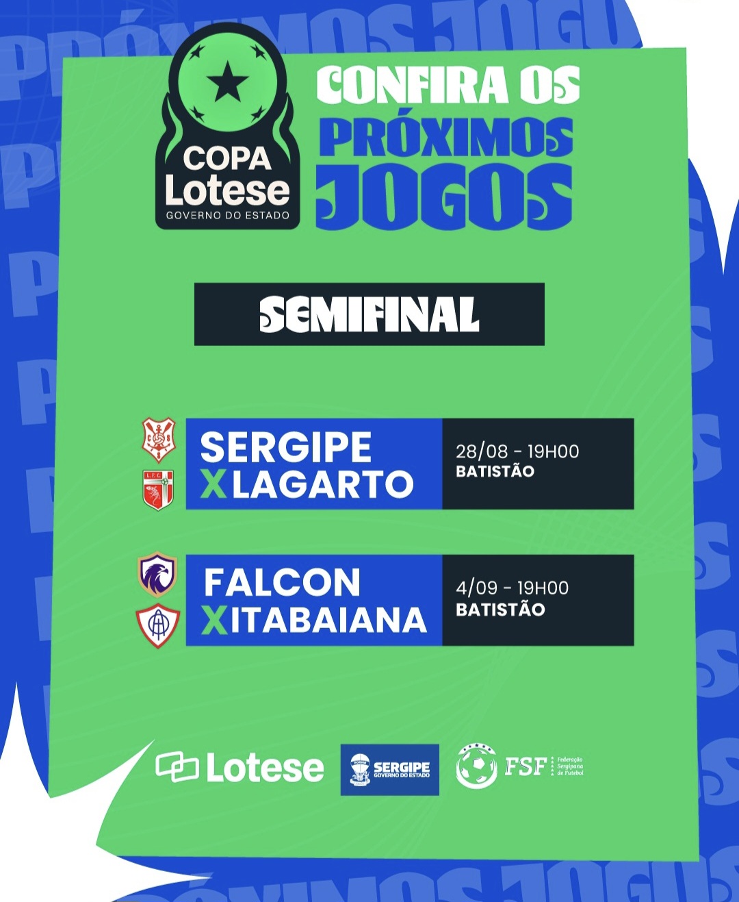 Quem avançar de fase vai enfrentar na decisão o vencedor da semifinal entre Falcon e Itabaiana. O duelo que vale vaga na final da Copa Lotese Governo do Estado será na próxima semana, na quinta-feira (04/09), na arena Batistão, em Aracaju.