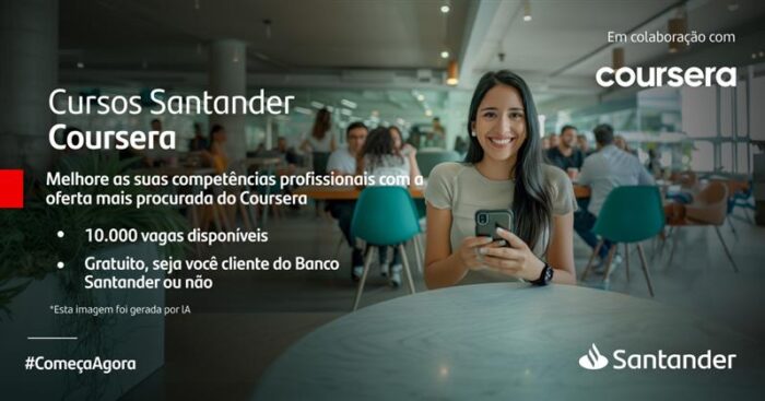 O Santander firmou uma parceria com a plataforma global de aprendizagem online Coursera, que irá oferecer 10 mil bolsas gratuitas para acessar todo o conteúdo de treinamento da plataforma por um ano. Os contemplados poderão se candidatar a uma das vagas em cursos relacionados com marketing e comunicação, soft skills, critérios de sustentabilidade ESG (ambiental, social e governança), ciência de dados ou cibersegurança, bem como certificações profissionais da IBM, Microsoft, Google ou AWS, entre outros. As inscrições podem ser feitas até 19/03/205 na plataforma Santander Open Academy: https://app.santanderopenacademy.com/pt-BR/program/coursera-professional-certifications