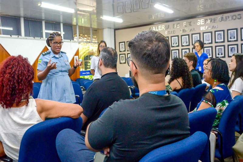 Coordenadora da Ronda Maria da Penha, da Polícia Militar, major Fabíola Goes, explica que parcerias institucionais são fundamentais para alcançar diversos perfis de público.