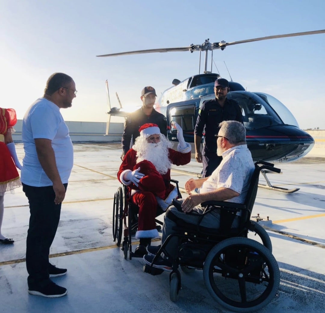 Por volta das 16 horas e 32 minutos daquele domingo de 30 de novembro de 2025, os patins do helicóptero tocaram suavemente o terraço do Aracaju Parque Shopping. O céu, limpo e intensamente azul, parecia abrir caminho para a chegada histórica que se anunciava. Dentro da aeronave vinha o primeiro Papai Noel negro PCD do Brasil.