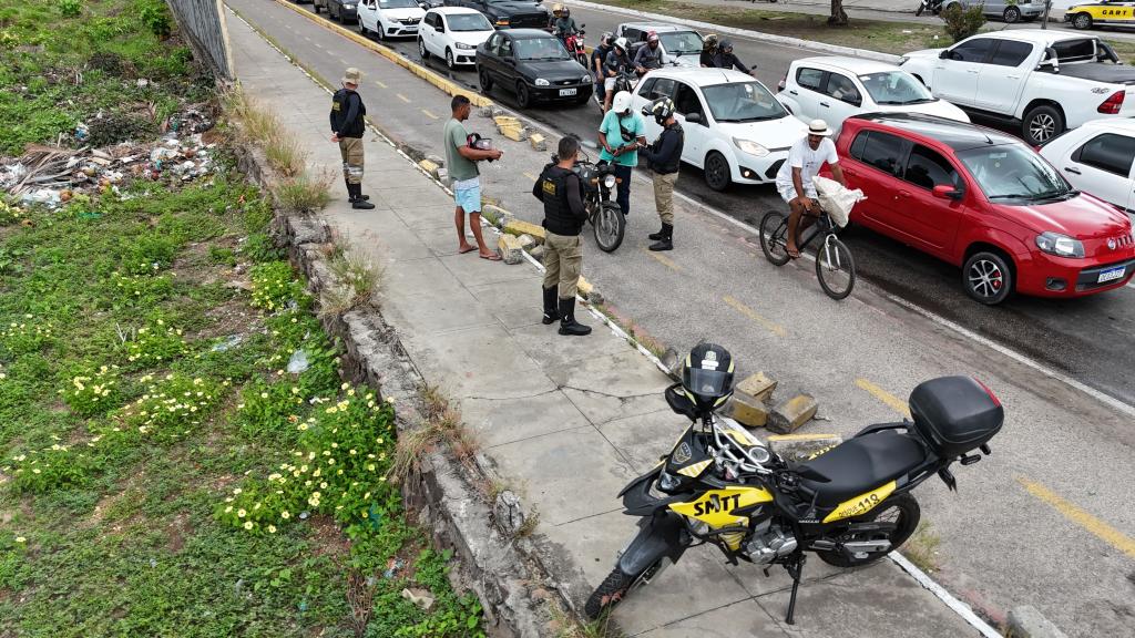 A Superintendência Municipal de Transportes e Trânsito (SMTT) de Aracaju realizou uma operação de fiscalização, nas proximidades da Praça dos Expedicionários, nesta sexta-feira, 21. A ação, que atendeu a uma solicitação de ciclistas e trabalhadores que transitam pela avenida Augusto Franco e se sentem vulneráveis com a constante presença de circulação irregular de motocicletas, contou com a atuação de agentes do Grupamento de Ações Rápidas de Trânsito (GART), e o apoio de um drone para monitoramento.