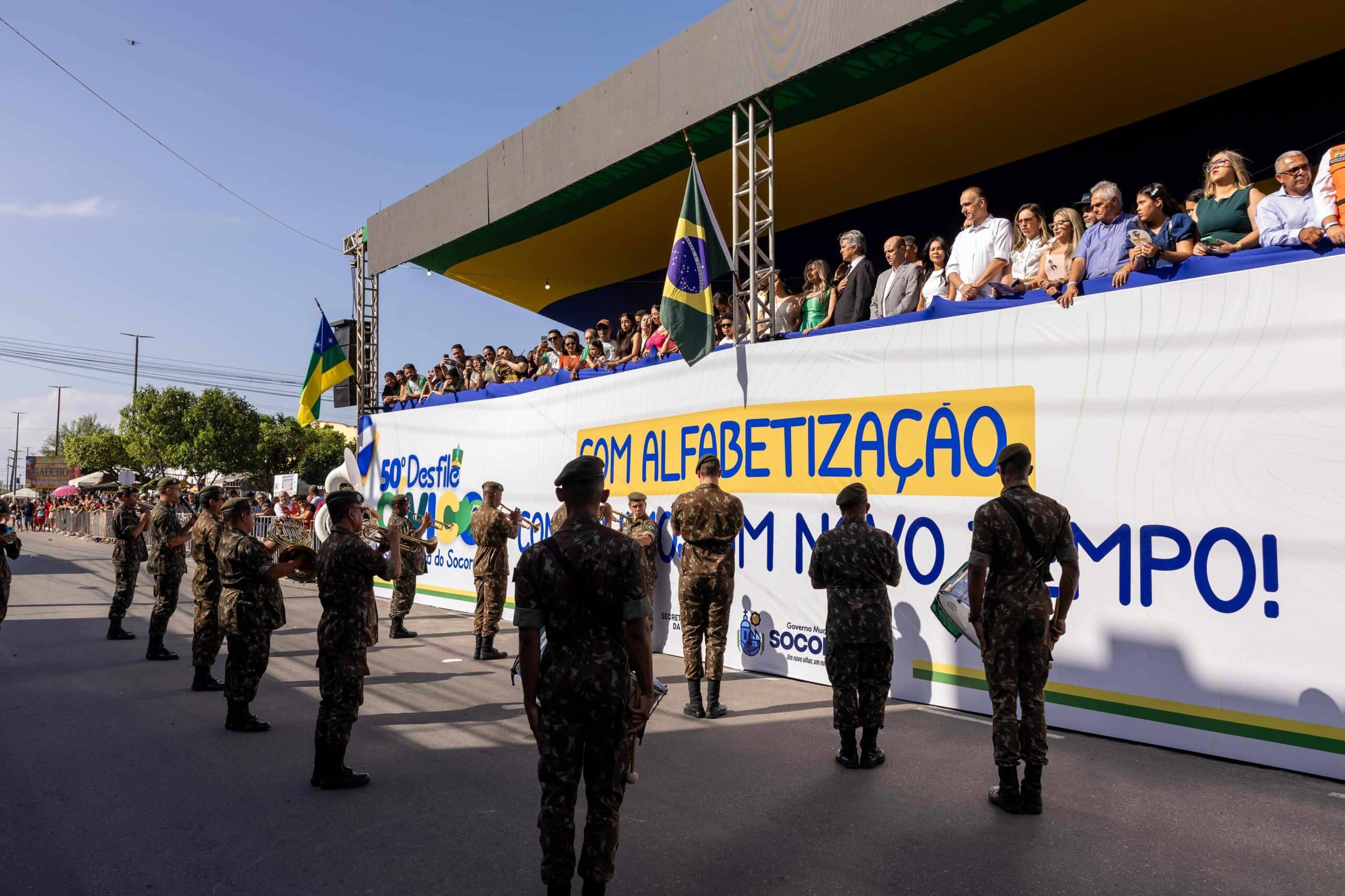 Na tarde deste domingo, 21, a Prefeitura de Nossa Senhora do Socorro, por meio da Secretaria Municipal da Educação (Semed), realizou o 50º desfile Cívico do município, celebrando a Independência da República, cultura, civismo e tradição que enche a população de orgulho. O tema escolhido para a solenidade deste ano foi ‘Com alfabetização construímos um novo tempo’. A cerimônia teve início às 14h, na avenida José Matos Lima e contou com a apresentação de 30 escolas da rede municipal, colégios particulares, desbravadores e aventureiros, escolas estaduais, Guarda Municipal de Socorro (GMS), Polícia Militar, entre outras instituições.