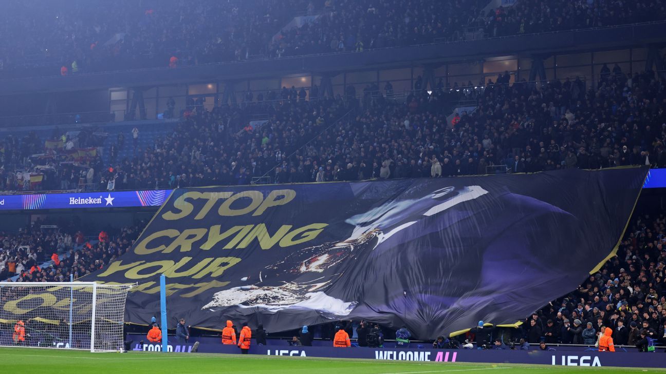 Mas as provocações não pararam por aí. Assim que os times subiram para o gramado, a torcida do City ergueu, atrás de um dos gols, um bandeirão com Rodri com a Bola de Ouro em mãos e a frase: “Pare de chorar tanto”.