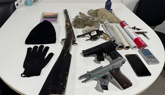 No decorrer da operação, os policiais apreenderam drogas, materiais utilizados para embalar entorpecentes, balança de precisão, três armas de fogo, um simulacro e apetrechos usados para roubos de veículos.