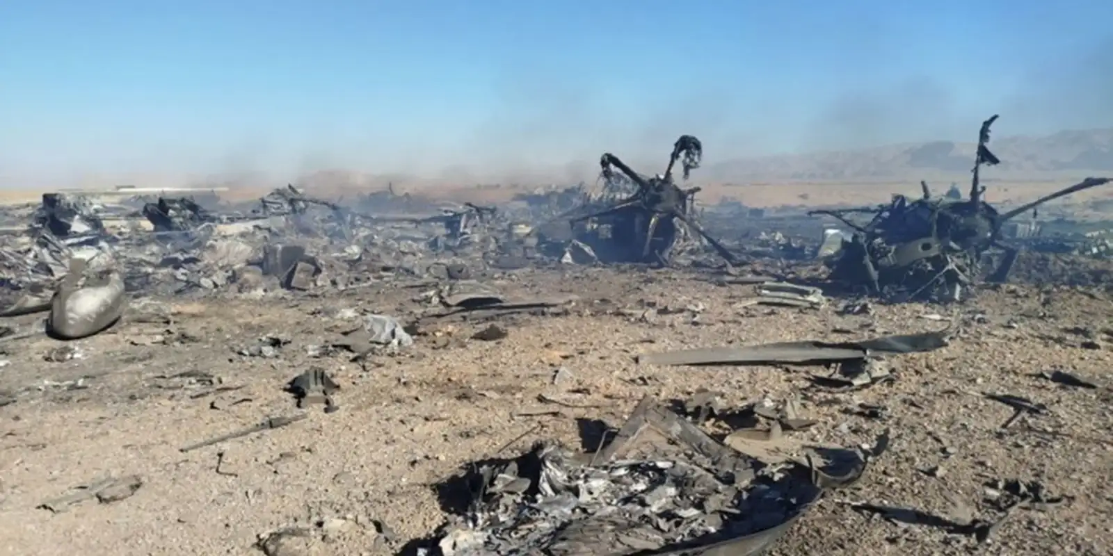 Agência iraniana de notícias mostra aeronaves abatidas e nega que piloto estadunidense tenha sido resgatado. Foto: Tasnin News/Divulgação