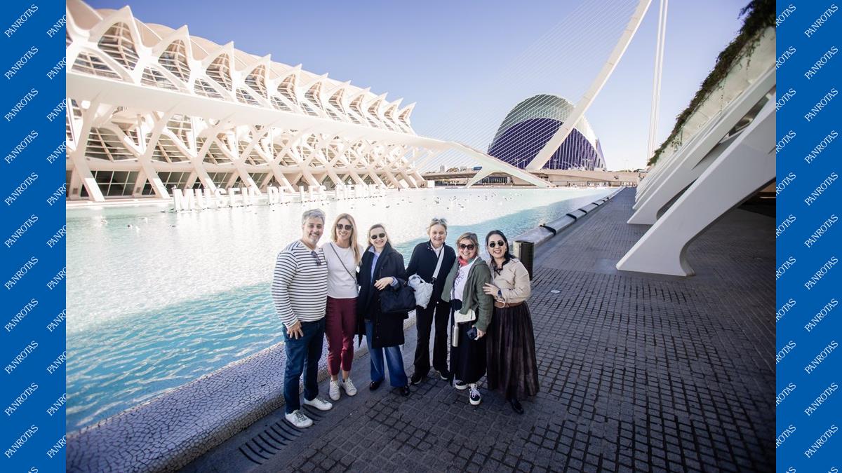 Thais e Renato Luz, da Startur Agência de Turismo, Jacqueline e Heloisa Papaléo, da JR2TUR, Estela Farina, da NCL, e Renata Yano, da Teresa Perez, na Cidade das Artes e das Ciências de Valência