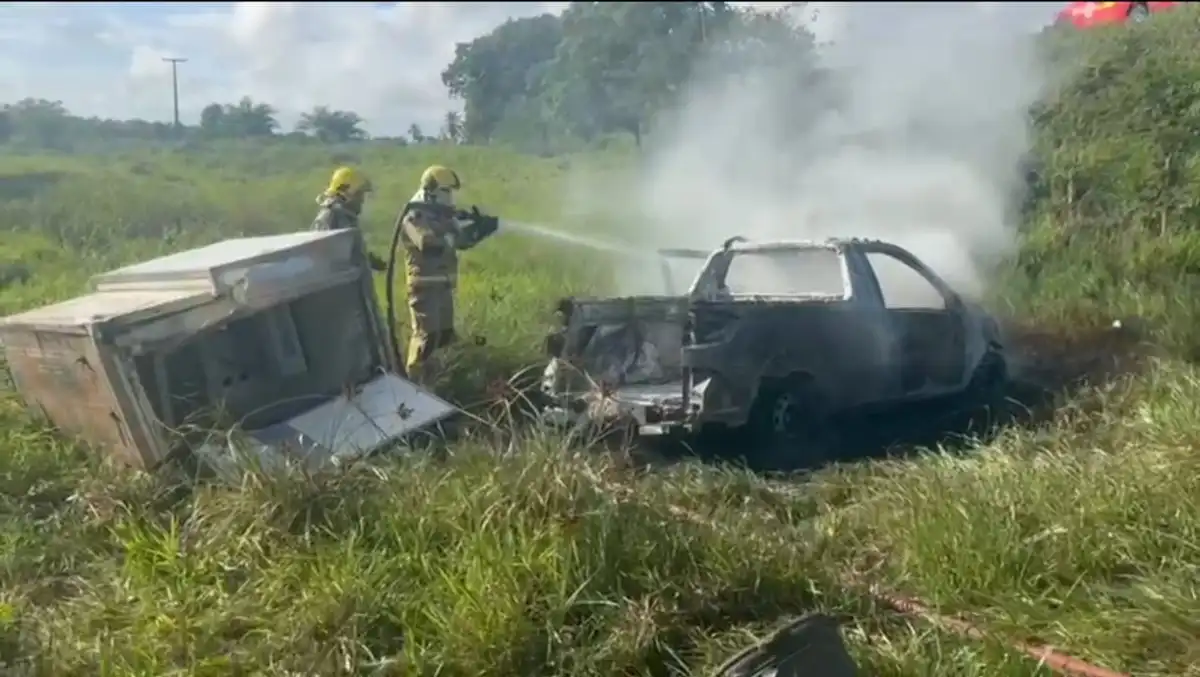 De acordo com as informações, o motorista perdeu o controle do veículo, que saiu da pista, caiu em uma ribanceira e, em seguida, foi tomado pelas chamas. O automóvel, modelo Strada, ficou totalmente destruído pelo fogo.