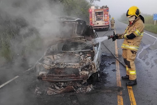 Ao chegar à rodovia, a guarnição constatou que o incêndio já estava em fase final de combustão, com poucas chamas concentradas no interior do veículo e sem a presença de vítimas ou do proprietário.