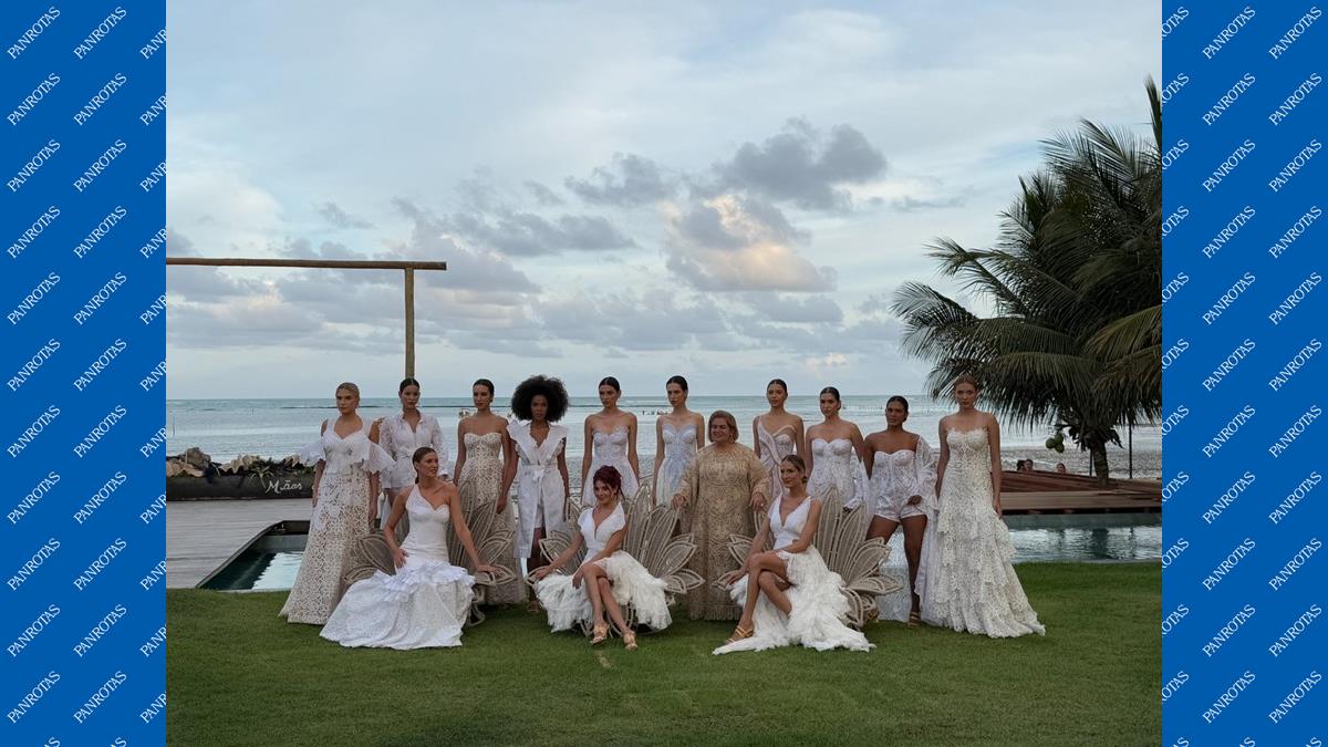 Martha Medeiros e as modelos no encerramento do desfile